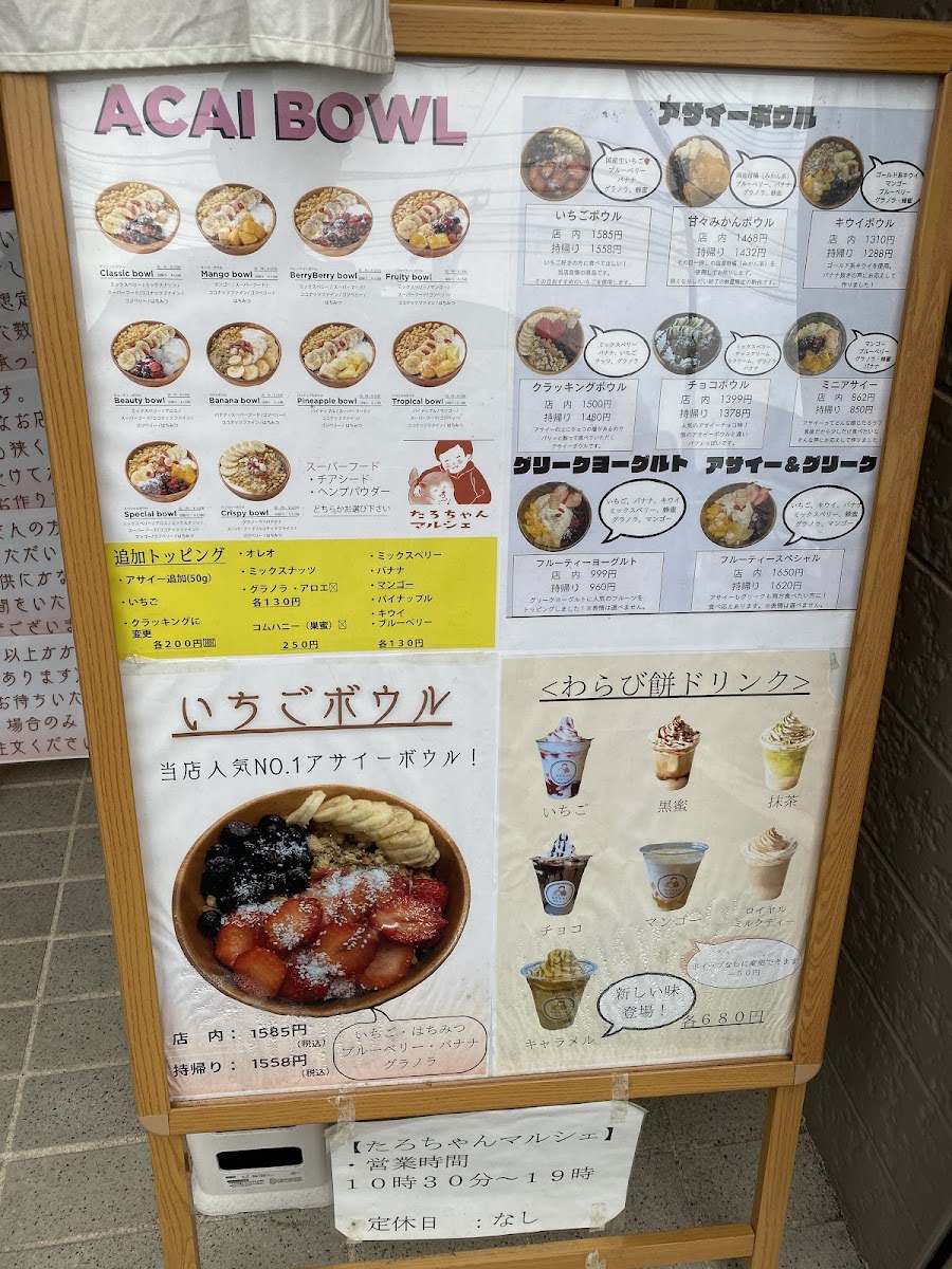 Welcome to Tarochan Marche, a charming café nestled in Okayama, just a short walk from Higashi Okayama Station. This delightful spot specializes in acai bowls and warabi mochi, offering a refreshing escape for health enthusiasts and dessert lovers alike.